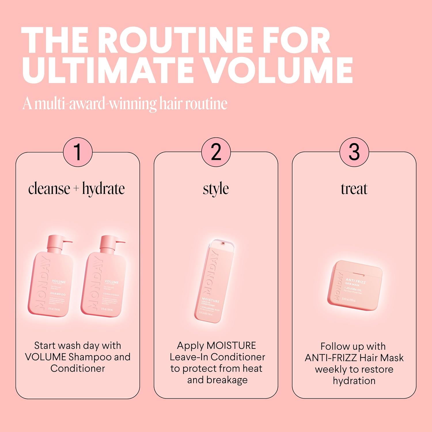 MONDAY HAIRCARE Volume Shampoo + Conditioner Set (2 Pack) 12oz Each for Thin, Fine, and Oily Hair, Made from Coconut Oil, Ginger Extract, and Vitamin E, 100% Recyclable Bottles Pink