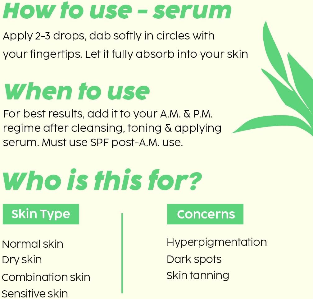 • Skin Brightening: Controls melanin content in your skin to reveal a radiant, even toned complexion.
