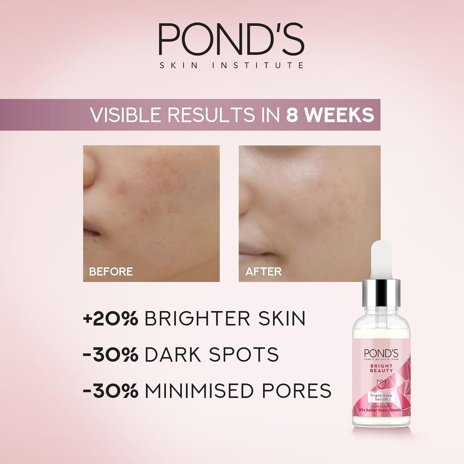 • Pond's Triple Glow Serum moisturizer visibly reduces spots and brightens skin in 7 days. Try it today and see the difference