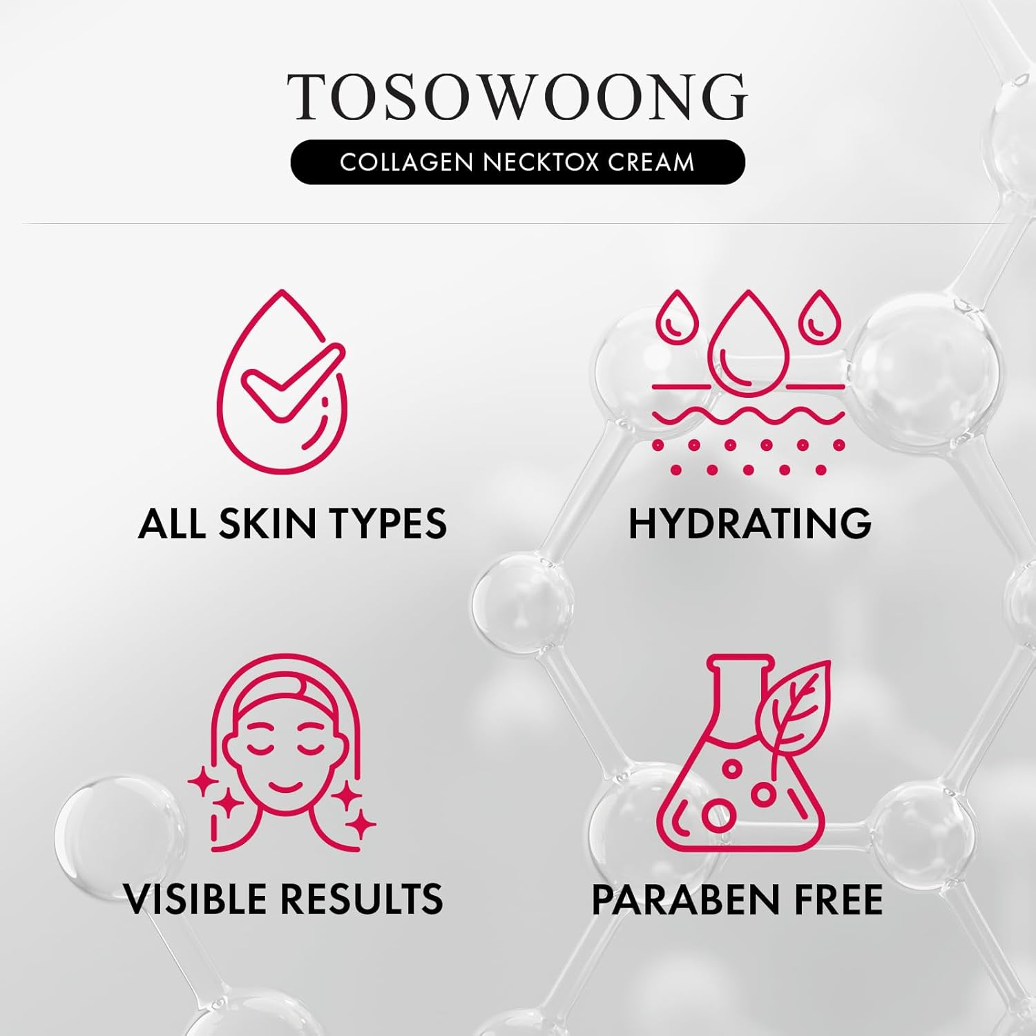 TOSOWOONG Collagen Necktox Cream with Collagen and Hyaluronic Acid for Neck Firming, Anti-aging, Wrinkles and Tightening, Korean Skin Care, 50ml, 1.69 fl. oz