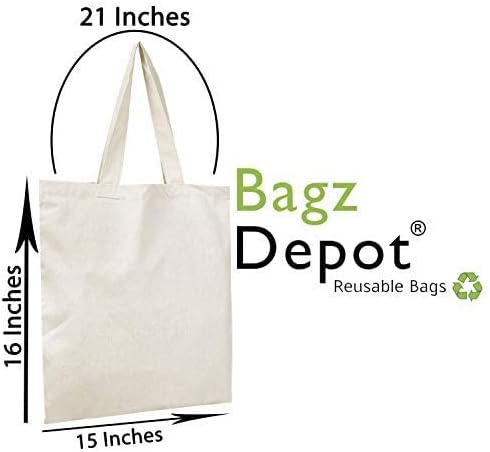 BagzDepot Plain Cotton Canvas Tote Bags - Pack of 12 - One Size - Natural
