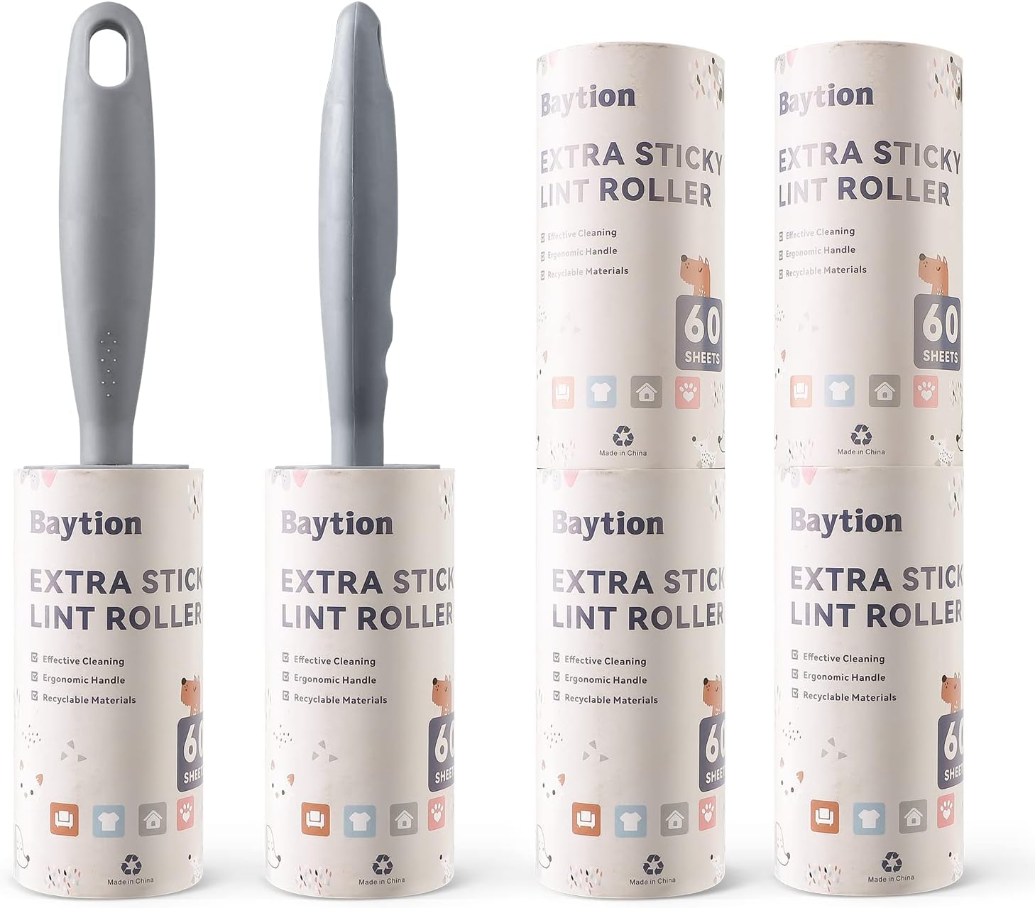 • 🔎【Comprehensive & Damage-Free Cleaning】Baytion lint roller is made of premium PP and professional strength adhesive tape, and the handle is made of solid plastic, which is durable without any signs of wear. When the paper roll is installed on the handle, it can easily rotate 360 °, It is good at cleaning hard-to-reach places, such as debris and hair in a small space. Because of the high-quality adhesive, it is non-toxic and tasteless, and will not damage the fabric and leave traces.