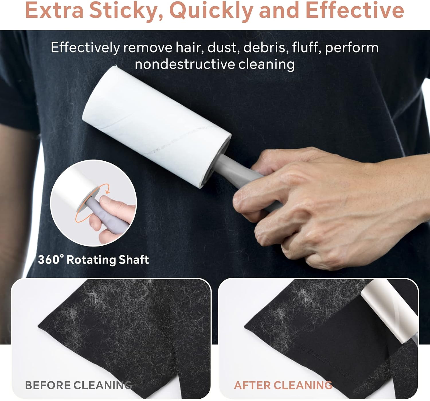 • 📍【Extra-Sticky Lint Roller】Lint remover with professional strength adhesive can remove fluff, debris, dirt, etc. faster without leaving anything unwanted. with it, keep the sofa, sheets and carpets clean all day.The set contains 2 reusable plastic handles, 6 extra refills, and each paper core has 60 pages, totaling 360 stickers(𝗡𝗼𝘁𝗲: 2 handles in the roller. If there are no handles, kindly please contact us to replace)