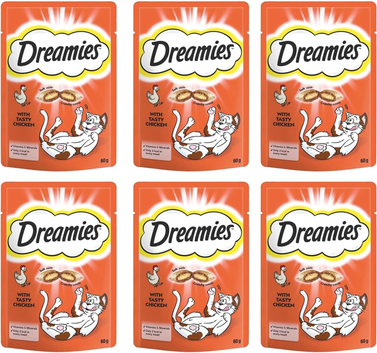 - IRRESISTIBLE WITH TASTY CHICKEN: Cats and kittens can't resist delicious and flavourful Dreamies Cat Treats. These cat food bites are crunchy on the outside and soft on the inside with an irresistible flavor of tasty chicken.