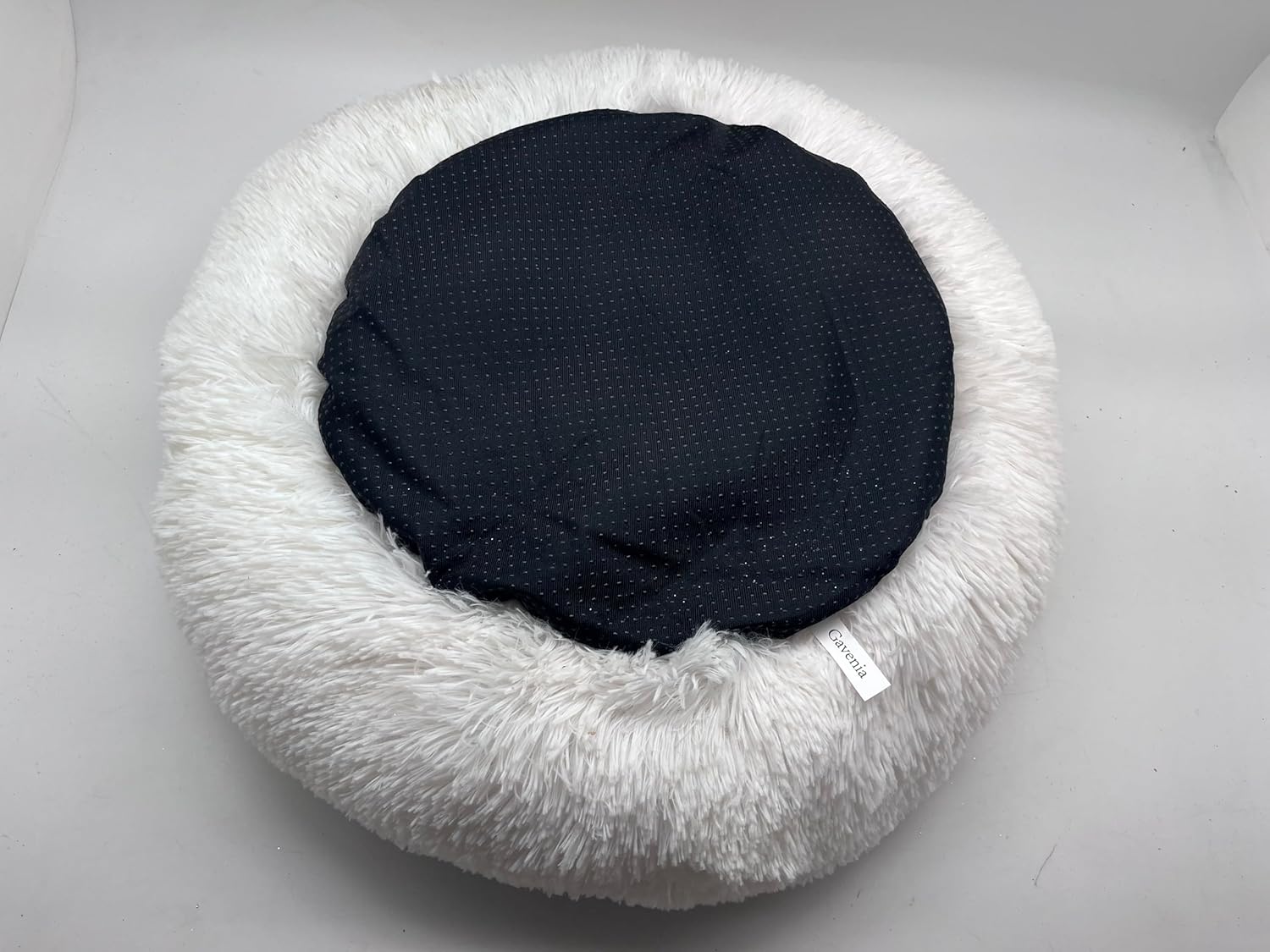Gavenia Cat Beds for Indoor Cats -20’’x20’’ Washable Donut Cat and Dog Bed,Soft Plush Pet Cushion,Waterproof Bottom - Fluffy Dog and Cat Calming & Self-Warming Bed for and Sleep Improvement (Beige)