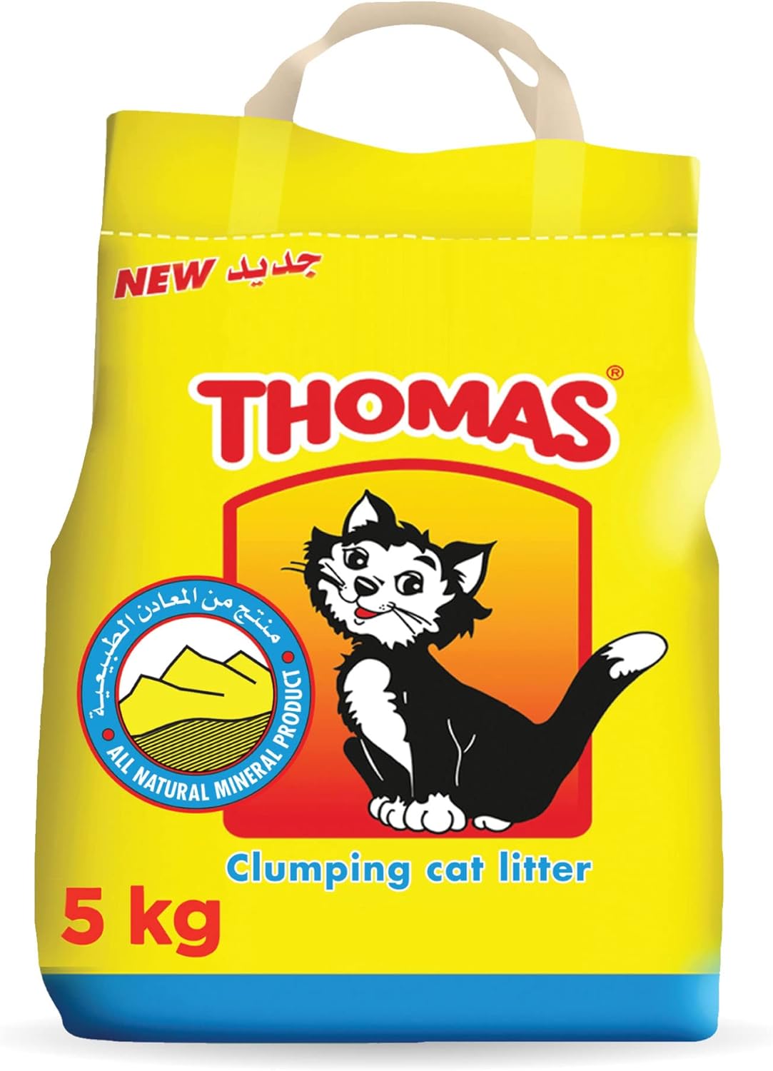 Thomas Cat Litter, Natural Minerals Litter Sand, This Cat Litter Clumping and Highly Absorbent Nature Will Ensure Your Cat Will Come Back to its Cat Litter Box with Comfort, Bag of 5kg