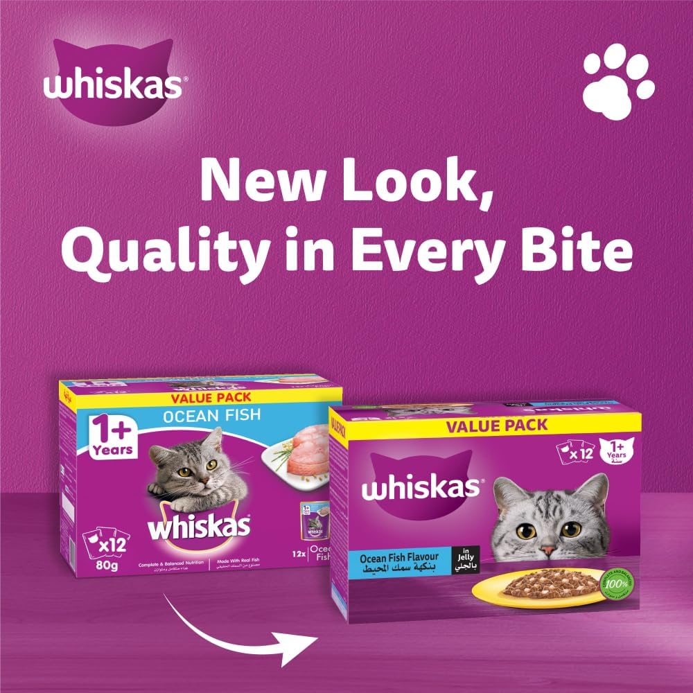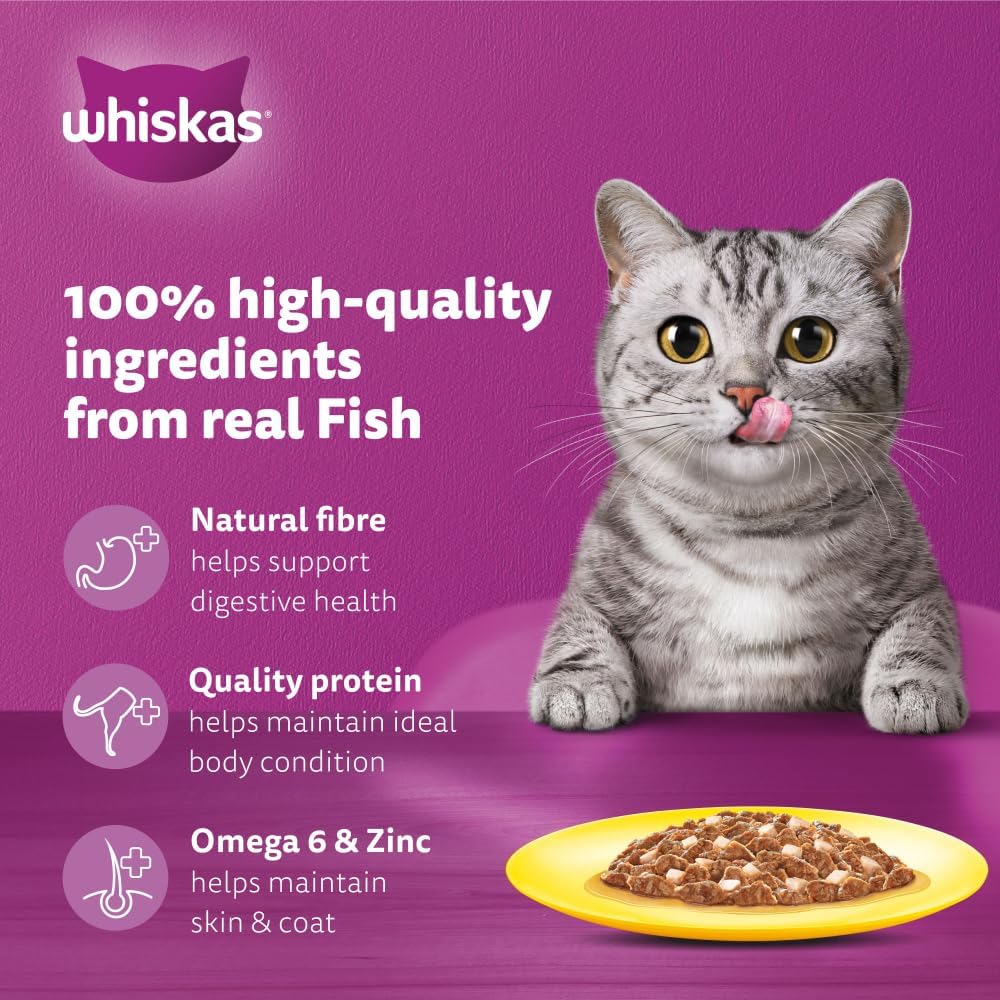 - OCEANFISH IN A DELICATE SAUCE: Whiskas Wet Cat Food offers your cat a delectable dining experience with oceanfish prepared in jelly. Made from real fish, this wet food ensures your cat will eagerly anticipate every mealtime.