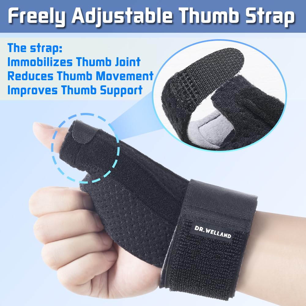 DRwelland Reversible Thumb & Wrist Stabilizer splint for BlackBerry Thumb, Trigger Finger, Pain Relief, Arthritis, Tendonitis, Sprained and Carpal Tunnel Supporting, Lightweight and Breathable