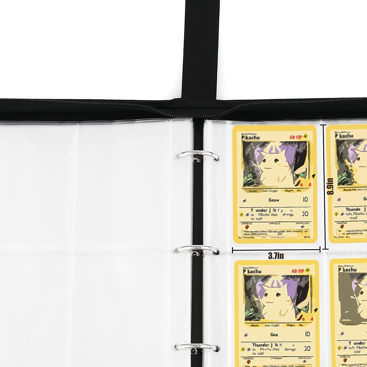 - 【Capacity】4-pocket per page, cards can be stored on both sides, including 55 high-quality removable sleeves, hold up a total of 400 for trading card games.