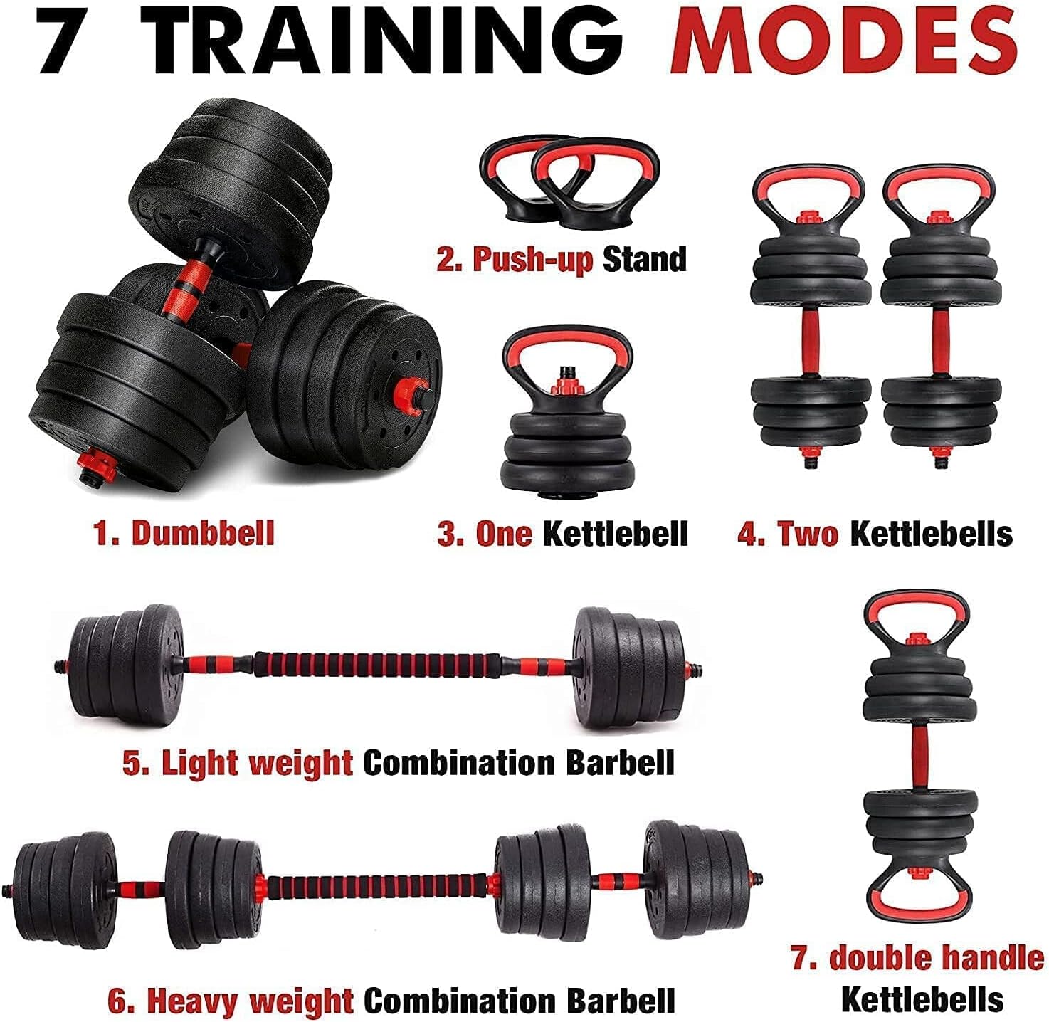 - Seven in One: The dumbbell-barbell set allows you to have a versatile workout. The dumbbells can be used to sculpt your arms, while the barbell setup allows you to practice dead-lifts or squats. This product is perfect for improving overall health or encouraging weight loss. It also helps strengthen upper body, core muscles, and lower body. The adjustable design makes it easy to stay fit at home, office and Gym.