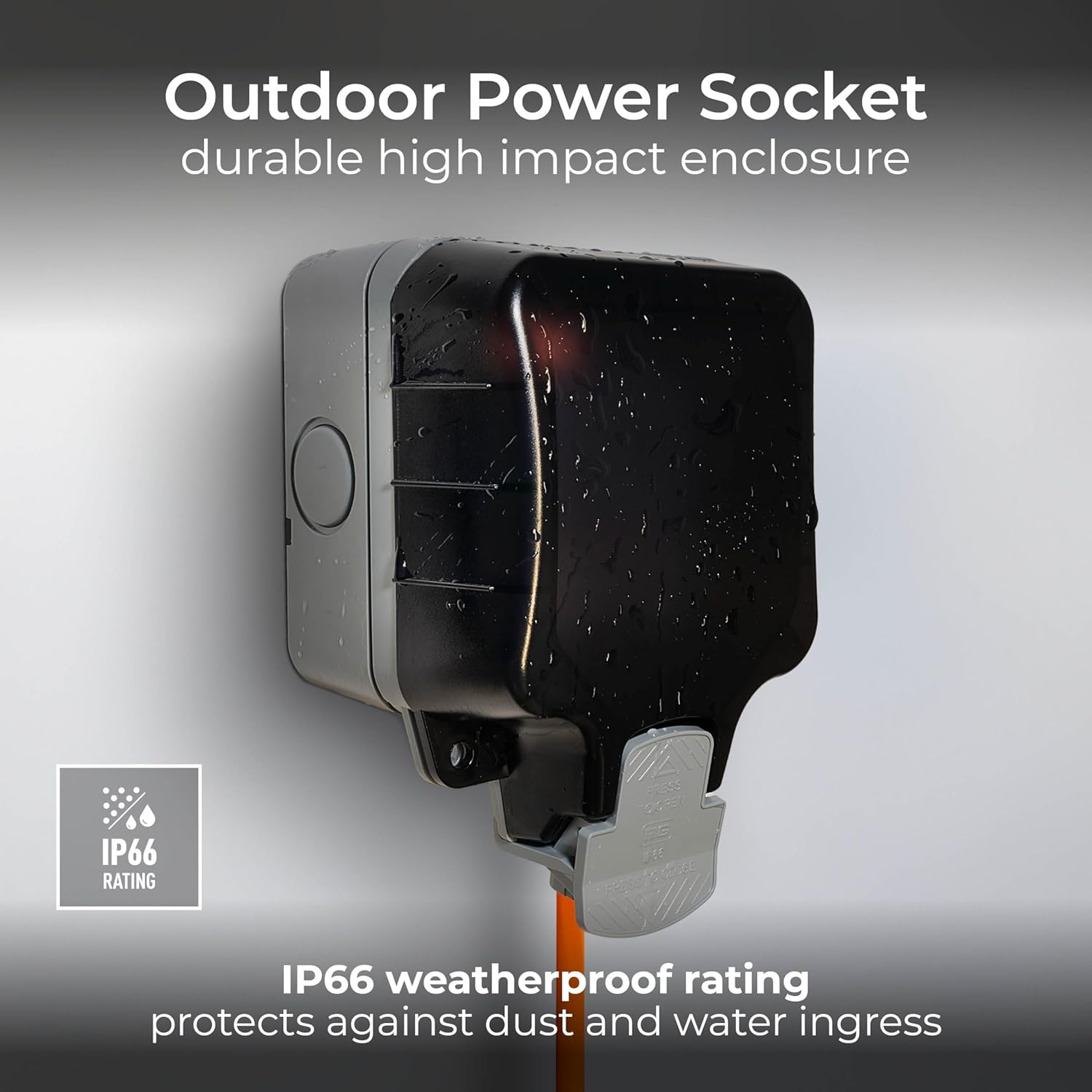 • WEATHERPROOF AND DUST PROOF RATING OF IP66: With a neon LED power indicator and a clear cover which clips securely in place