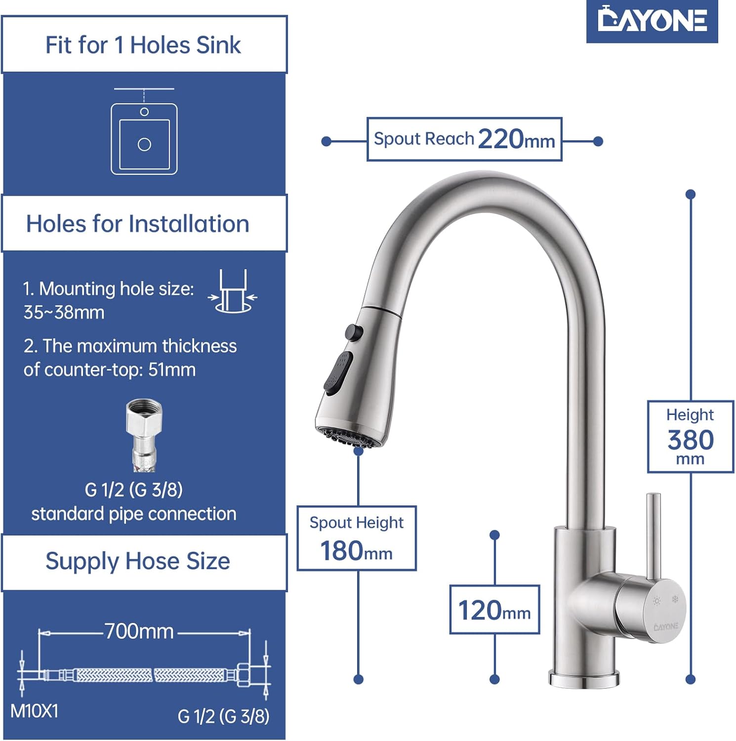 - Single Handle and 360° Rotation --- Easy control of hot and cold water and flow volume, high arc 360 degree swivel spout supply full range washing access, sprayer head always retract back to spout after each use