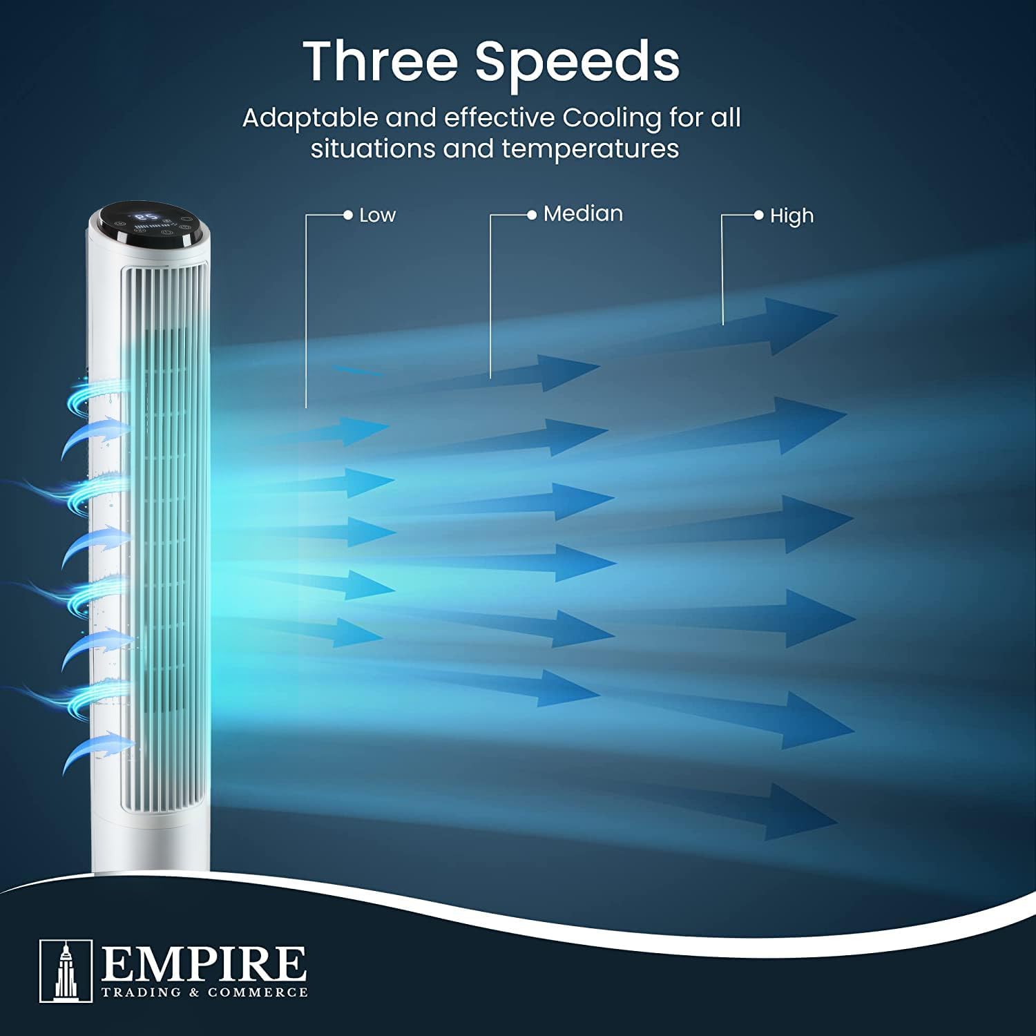 Empire 41 inch Tower Fan with LED Display, Remote Control Fan for Bedroom with Timer Function, 50W Cooling with 3 Speeds, Perfect 75° Oscillating Fan for Home, Living Room & Office (White)