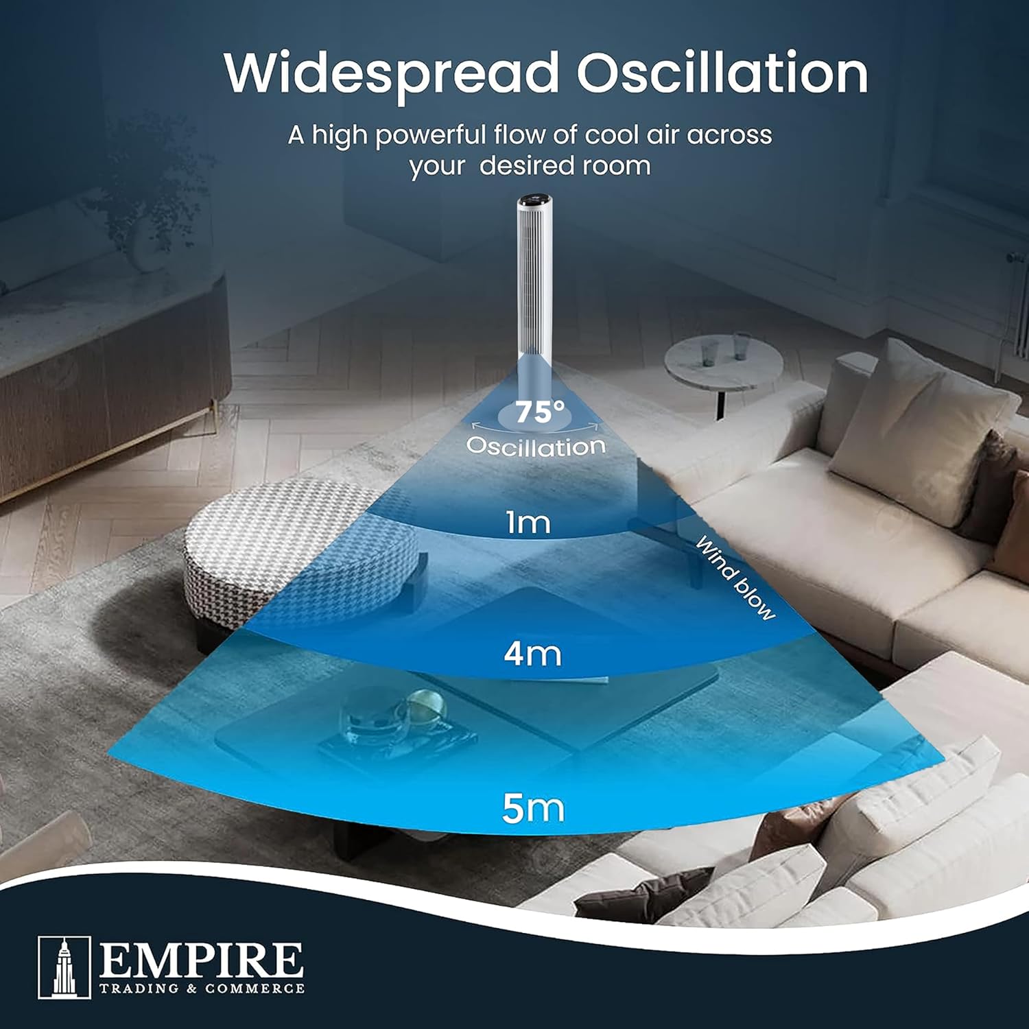 • ELEGANT MODERN DESIGN: The quiet, real space-saving standing fan can fit into any room corner because of its small base and body. The 41 Inch Empire fans for home bedroom are also very lightweight so you can effortlessly move them around your house if needed. Our multipurpose floor oscillating fan oscillates up to 75° angle and is equipped with a safety plug to prevent voltage overload and surge fan’s damage