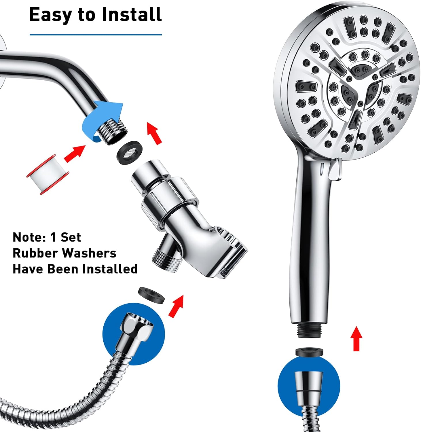 • ✔【Easy Installation & Self-Cleaning Silicone Nozzles】 All accessories are completed, tool-free, according to the instructions to complete the installation in a few minutes Well-distributed self-cleaning silicone nozzles provide an even spray and prevent lime and hard water build-up. Easy to clean and prevent clogging.