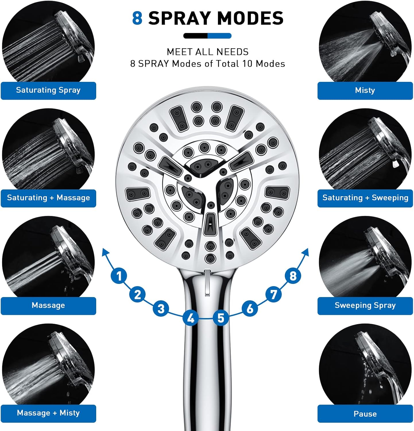 • ✔【8 Spray Settings + 2 Jet Modes】 Gcirik shower has 8 shower modes: Rain, Massage, Misty, Sweep, multiple combination modes and pause water saving mode. The Gcirik showerhead can bring a variety of shower modes, while the unique small nozzle makes the water flow more precise and water-saving. The upgraded 2 Jet modes bring more possibilities to your shower.