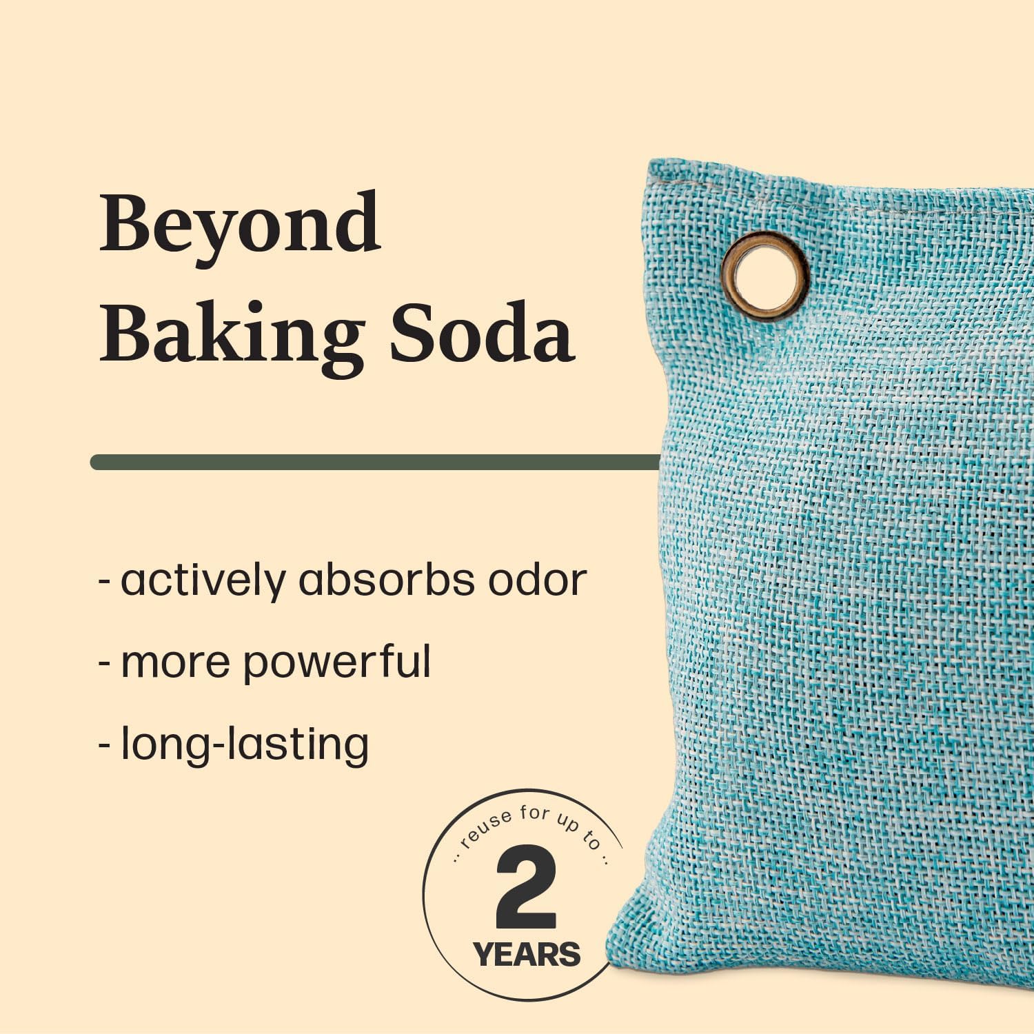 • USE IN SMALL AREAS: Perfect for Refrigerators, Freezers and Coolers. Metal grommet with included suction cup allows you to place your Moso Bag out of the way.