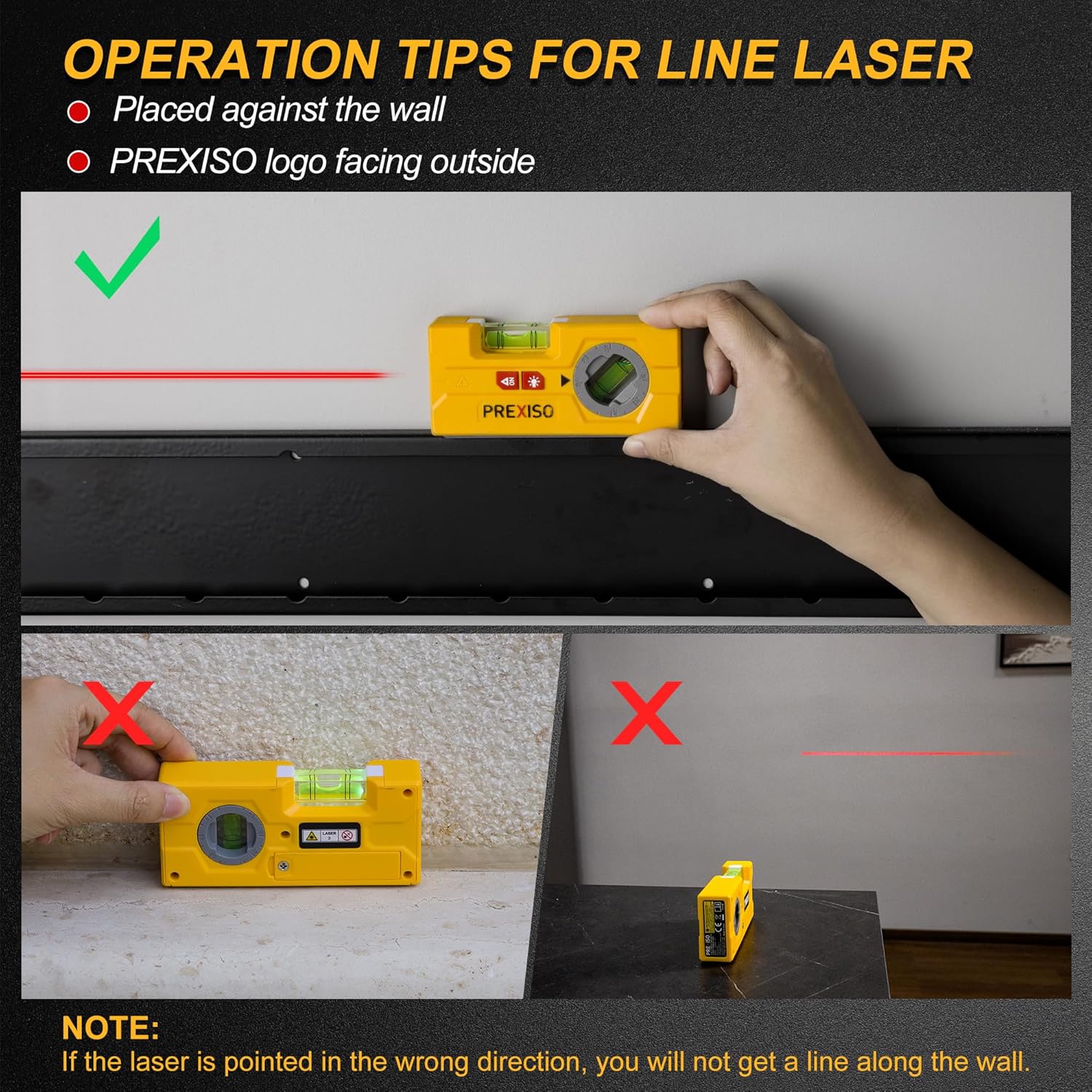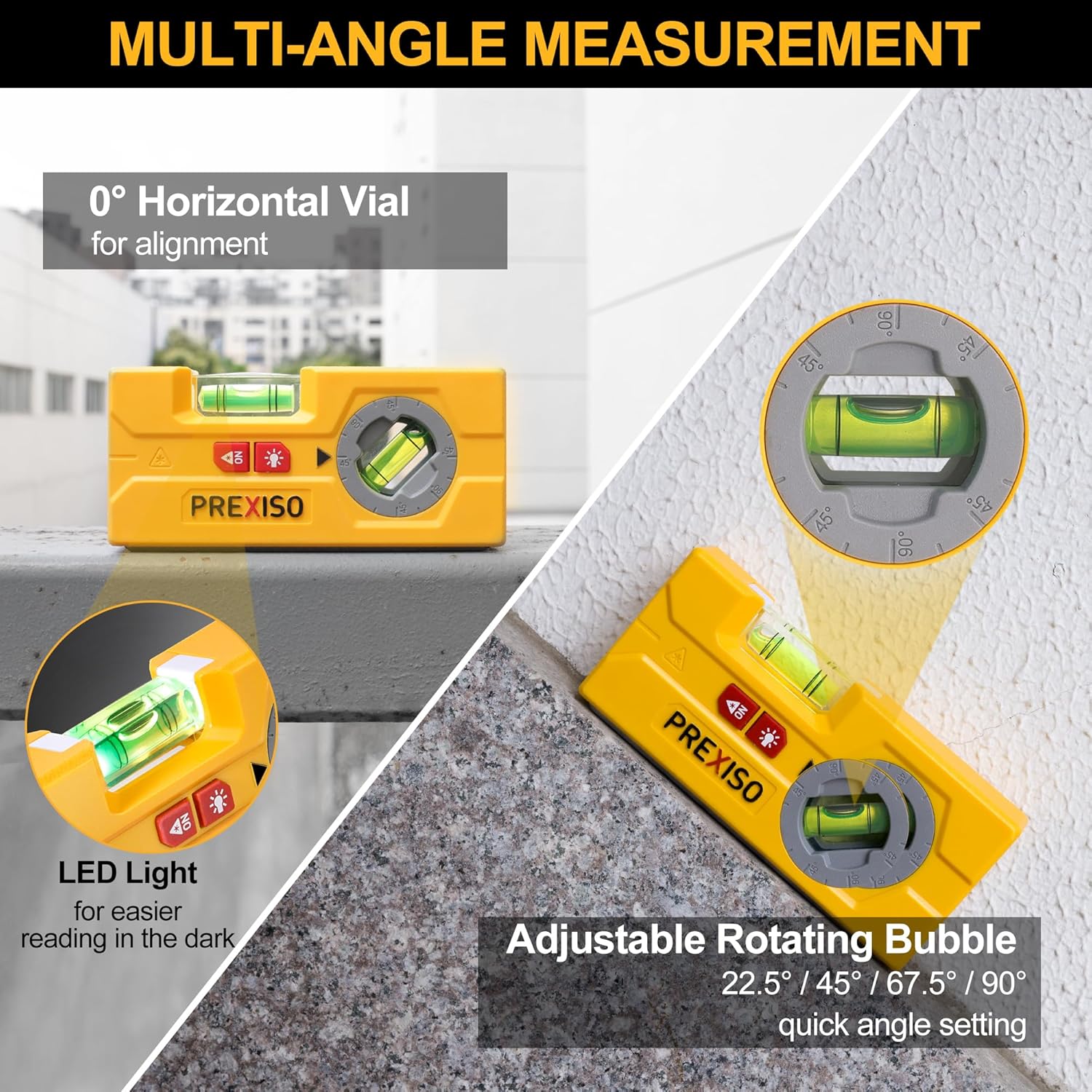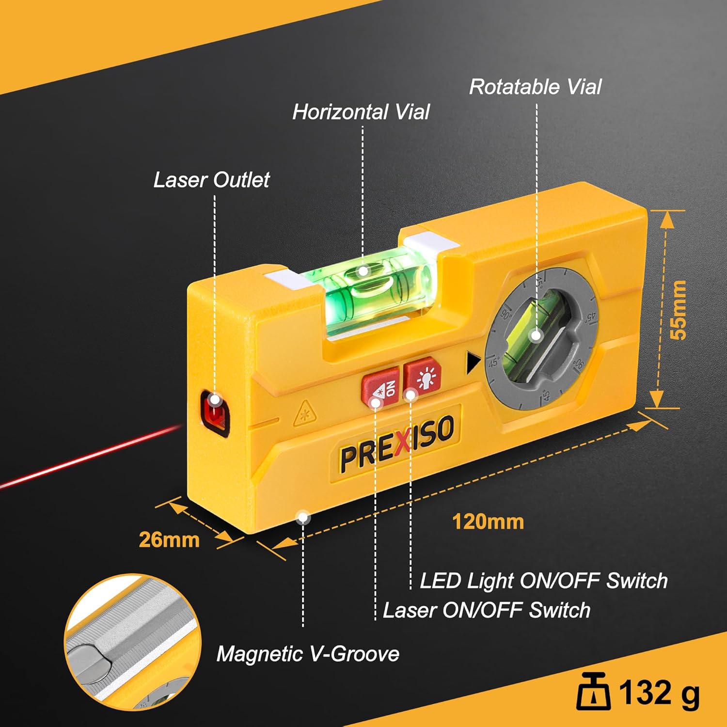 PREXISO 2-in-1 Laser Spirit Level, Mini Torpedo Level with LED Light, Rotatable Magnetic Pocket Leveler & 10 m Laser Leveler Tool for Hanging Picture, Wall Marking Painting, House Decoration