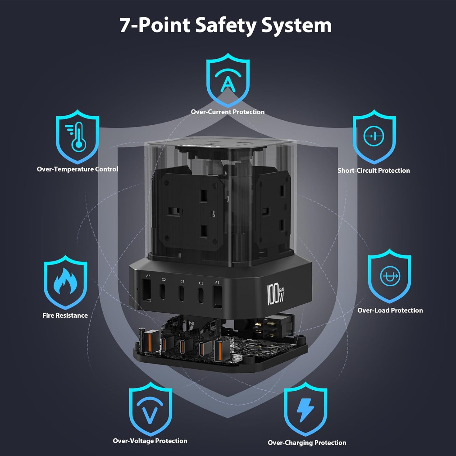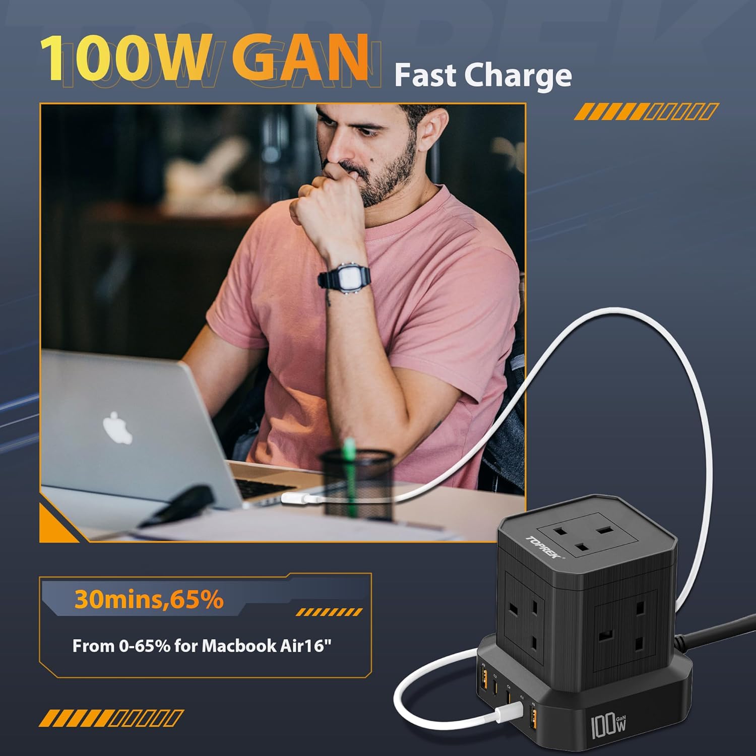 - 【100W Fast Charge USB-C Port】Tower extension lead Provides up to 100W of power when USB-C port connected to a single device, enough to fully charge devices such as MacBook Pro laptops, iPad Pro, smartphones, gaming devices, cameras, Bluetooth stereos, and more in less than 1 hour. The high power 100W is able to provide efficient and fast charging for these devices to meet the high power demand in daily and work.